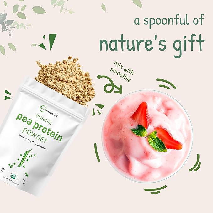 - North America Grown Pea Protein Bulk Powder Organic, 2.2 Pounds, Plant-Based Vegan Protein Organic, Non-GMO and Vegan.
