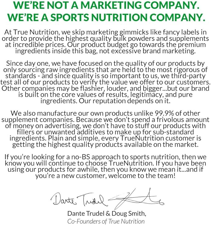 - Clean & Pure Formula – True Nutrition’s creatine is non-GMO, gluten-free, soy-free, and paleo- and keto-friendly, with no additives or fillers.