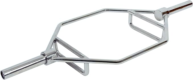 Sunny Health & Fitness Strength Training Olympic Hex Bar Barbell, High Load Capacity, Swivel Handles, Safety Clips, Knurled Handles for Deadlifts, Shoulder Presses, Shrugs, Back Rows, Weightlifting