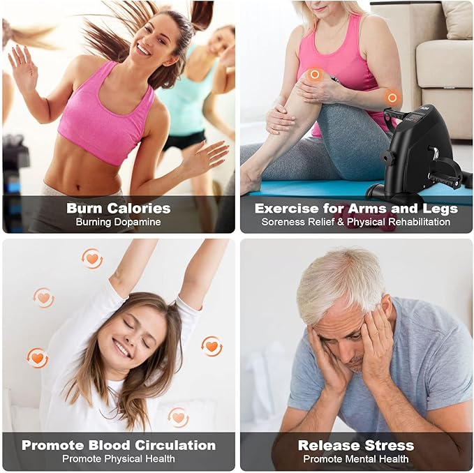- 【Adjustable Workout Intensity】Easily adjust the resistance level with the tension knob to meet your needs. This mini exercise bike is a great choice for beginners and perfect for elderly exercise.