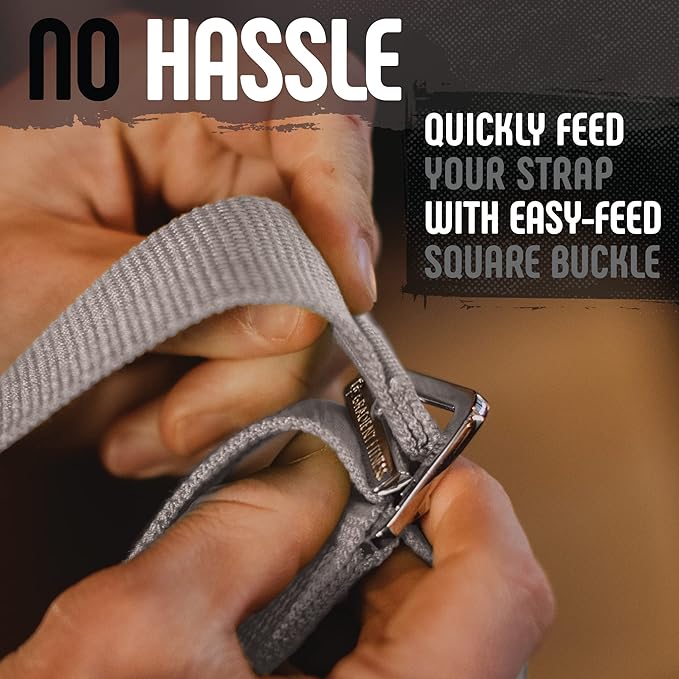 - ππππ-π πππ π πππππππ-ππππ ππππππ: Stop wasting time between poses. Quickly feed the 8 ft. yoga strap through our innovative easy-feed square buckle. No more losing your Zen hassling with your yoga stretch strap.