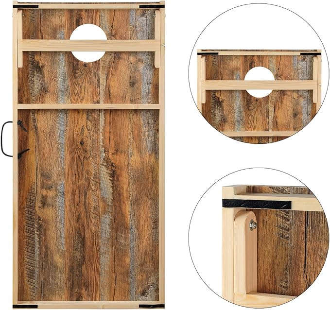 - Better Game Experience: Cornhole set is constructed of solid hardwood, foldable board legs are reinforced with metal screws, so it can prevent bouncing and slipping more effectively, bring more fun to your game. A great gift for thanksgiving day and christmas
