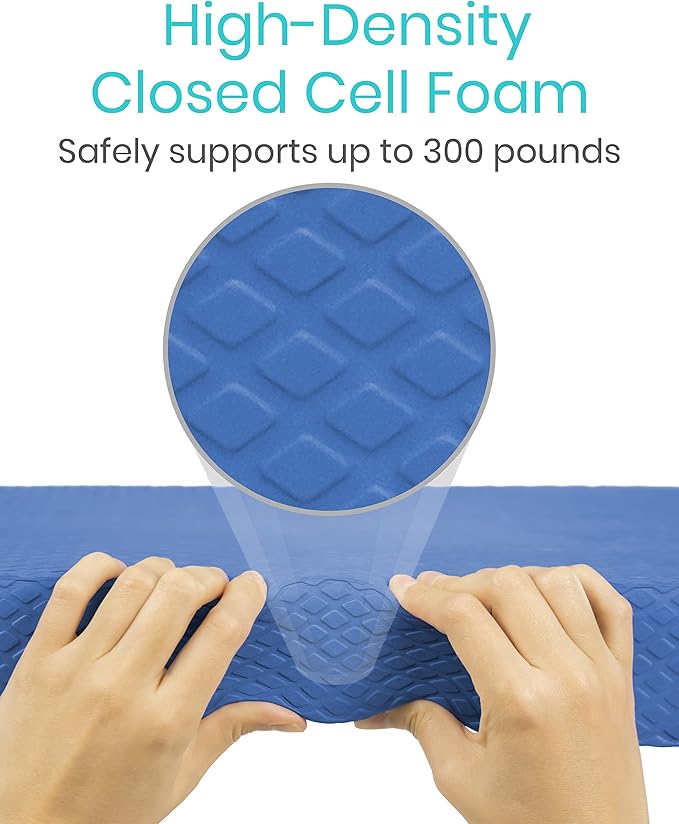 - DURABLE FOAM MATERIAL: Resilient, closed-cell foam is tear-resistant, safely supporting up to 300 pounds. The thick, latex-free 2.4” foam balance pad is also water-resistant, repelling sweat. Easily clean the balance pad with a damp cloth and mild detergent before drying with a lint-free cloth.