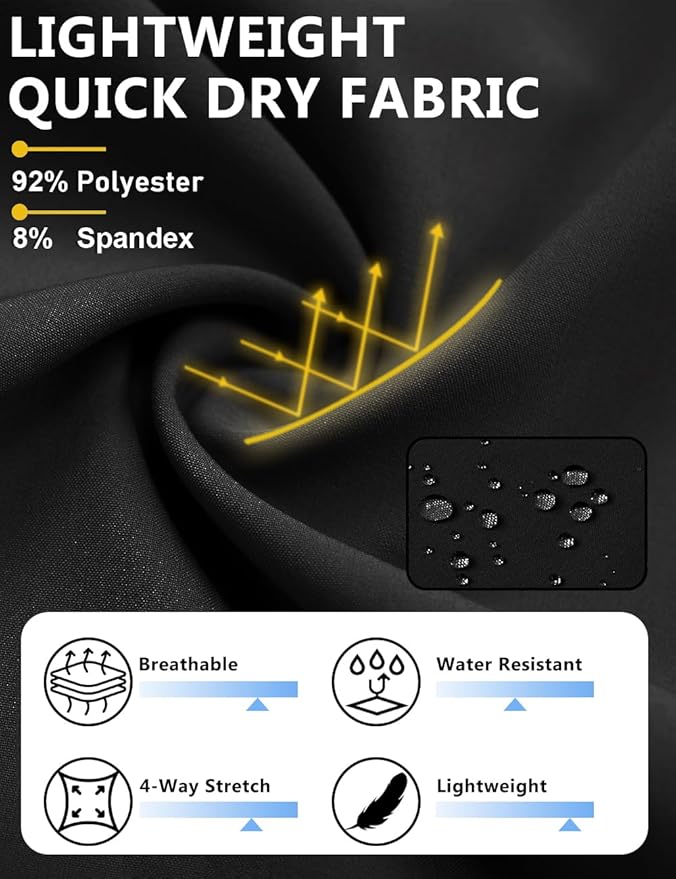 - 4-WAY STRETCH: Mens shorts have elastic waistband and adjustable internal drawstring, collocation 4-way stretch fabric ensures excellent mobility and maximum freedom of movement.