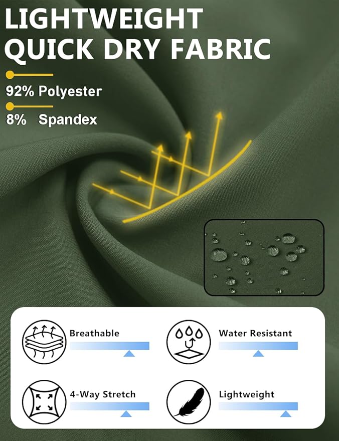 - 4-WAY STRETCH: Mens shorts have elastic waistband and adjustable internal drawstring, collocation 4-way stretch fabric ensures excellent mobility and maximum freedom of movement.