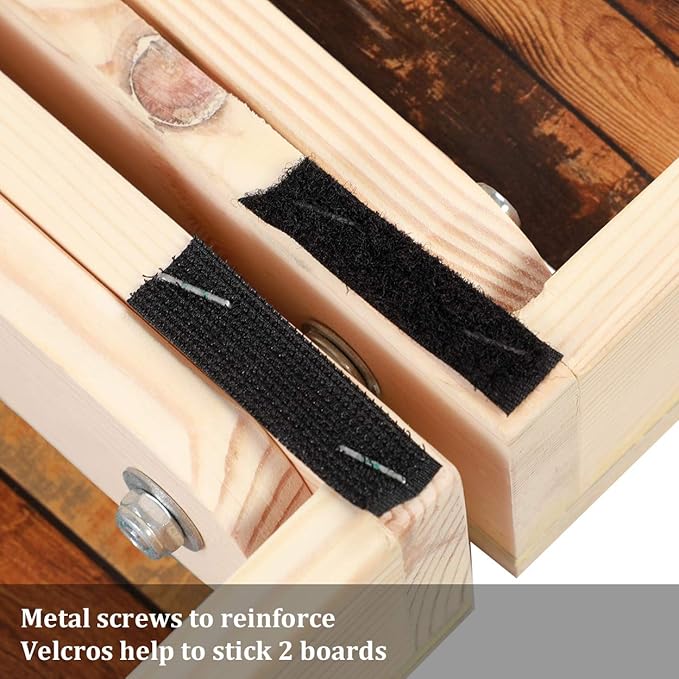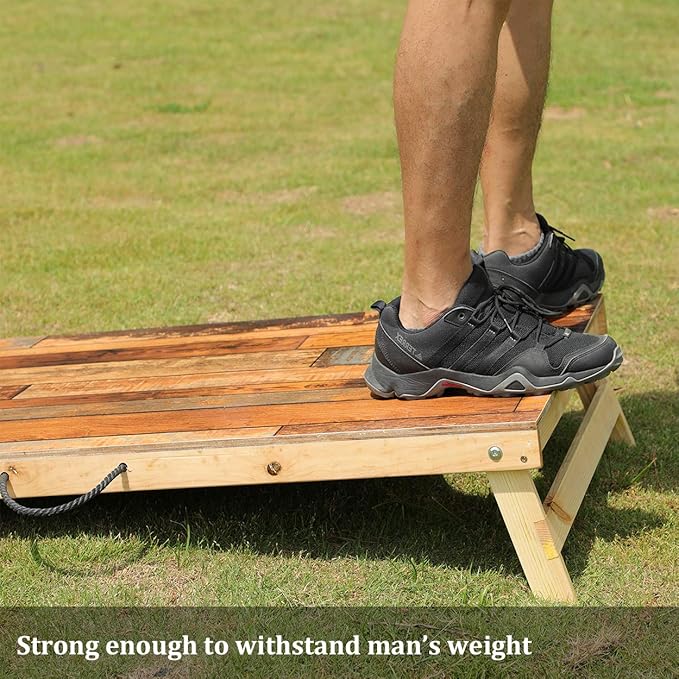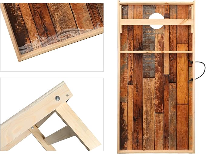- Solid Wood Construction: TIANNBU Cornhole game set is constructed of 100% solid wood frame, which means that the game board is not easily moved by throwing bags. With the support of two solid wood cross braces , the board is strong enough to bear the weight of an adult
