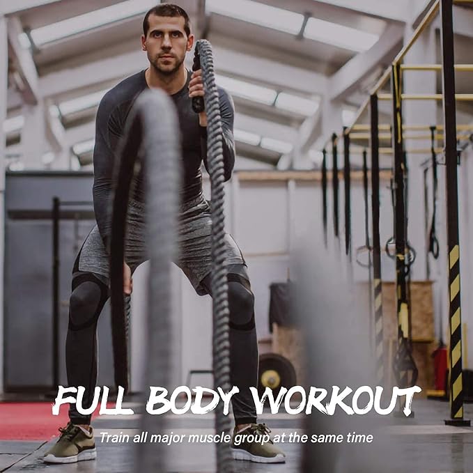 - 【3 Strand Design】: Available in 30', 40' and 50' lengths with 1.5" diameter. Shorter workout ropes are great for beginners trainers in home gym rope training, longer battle ropes are challenging for Strength professionals and fitness sprofessionals.