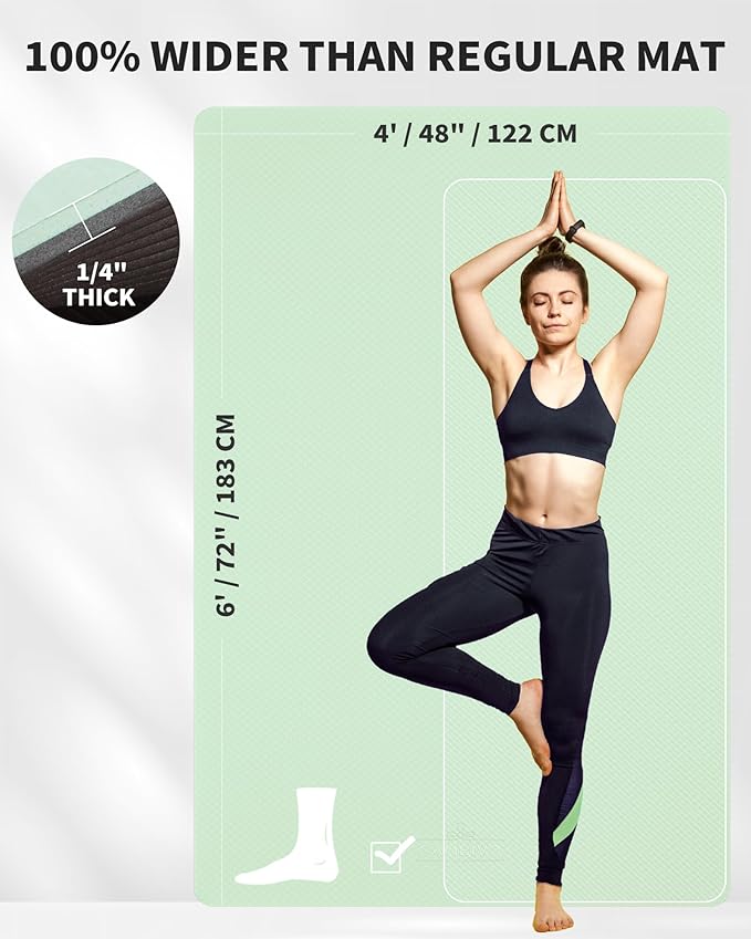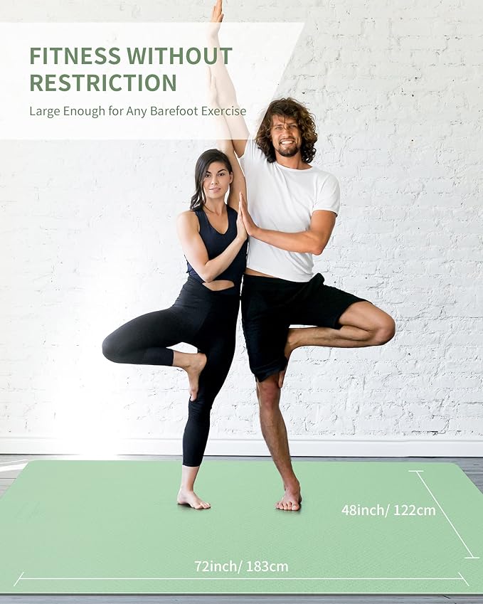 - Fitness Without Restriction: Extra length and width(72"x 48"), You will never feel restricted or limited by the size of this fitness mat; Extra-large space allows you to do any Yoga Poses, Pilates, Stretch, Foam Rolling, Cardio Workouts, Meditations and various barefoot bodyweight training like Squats, Lunges, Push-ups, Plank Variations, and Calisthenics