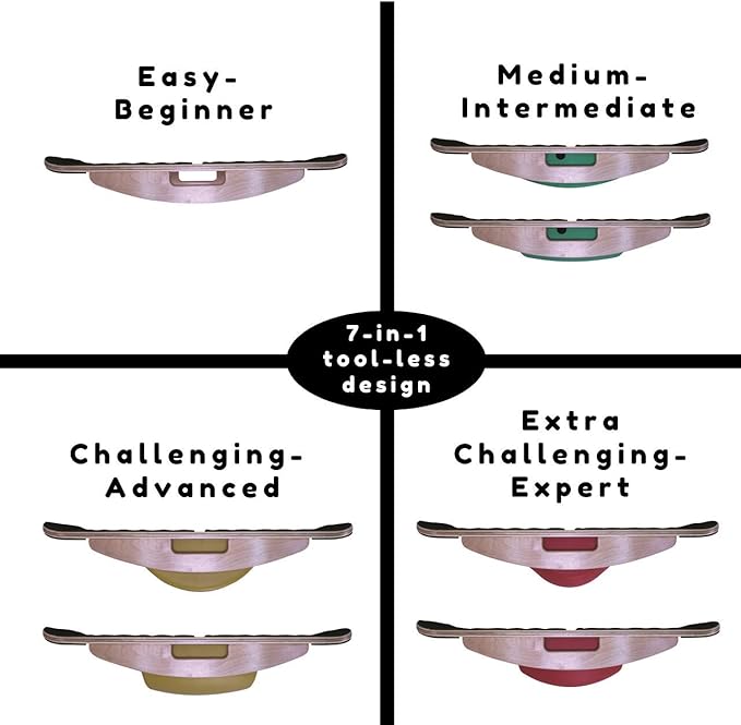 - THE ULTIMATE BALANCE BOARD WITH 7 ADJUSTABLE BALANCE LEVELS- Expertly crafted 7 adjustable balance levels-in-one toolless design with a 360-degree balance radius. 25” wide, curved deck for a sturdy, wide stance with a safe, soft, non-slip grip.