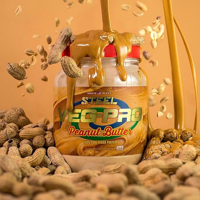 Steel Supplements Veg-PRO | Vegan Protein Powder, Peanut Butter | 25 Servings (1.65lbs) | Protein Powder with BCAA Amino Acid | Gluten Free | Non Dairy | Low Carb Formula | Artficial Flavoring