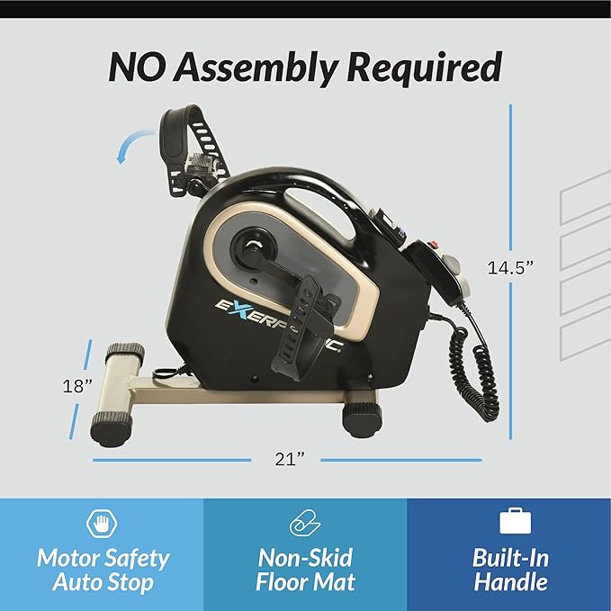 Exerpeutic 2000M Motorized Under Desk Exercise Bike - Electric Legs and Arms Pedal Exerciser - Fitness Equipment for Home Use - Remote Work Office Accessory - Black