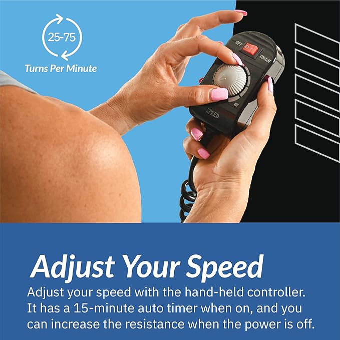 - ADJUSTABLE SPEED: The hand-held speed controller has a 6ft extended long cord for easy adjustment without hunching over. The bike offers more resistance when the motor is off and an auto 15-minute timer session when the power is on.