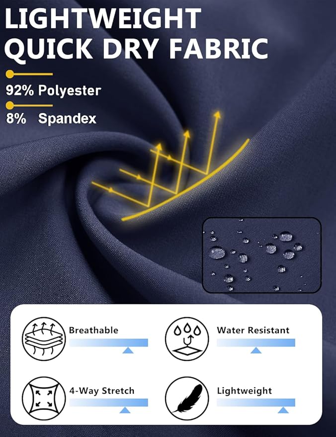 • 4-WAY STRETCH: Mens shorts have elastic waistband and adjustable internal drawstring, collocation 4-way stretch fabric ensures excellent mobility and maximum freedom of movement.
