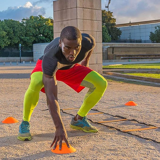 - IMPROVE YOUR SPEED, AGILITY AND SKILLS - Use this soccer training equipment, football training equipment, baseball training equipment, basketball training equipment to create a variety of drills for improving speed, agility, coordination, footwork, balance, and explosiveness. Suitable for coaches, football players, basketball players, soccer players, tennis players and athletes of all sorts. Can also be used to create a fun obstacle course suitable for kids and adults alike.