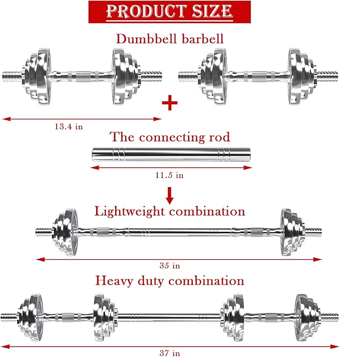 - 【2-IN-1 Design】- The fitness dumbbell set comes with a connecting rod to convert to a barbell easily within seconds to meet the needs of your maximum body workouts. Save time and money when exercising at home or in the office.