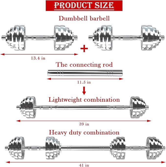 - 【2-IN-1 Design】- The fitness dumbbell set comes with a connecting rod to convert to a barbell easily within seconds to meet the needs of your maximum body workouts. Save time and money when exercising at home or in the office.
