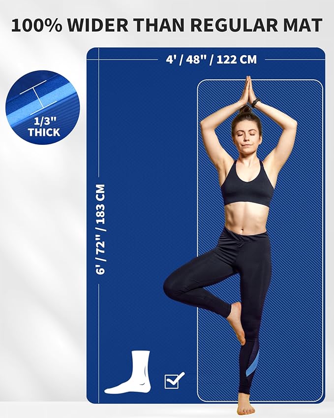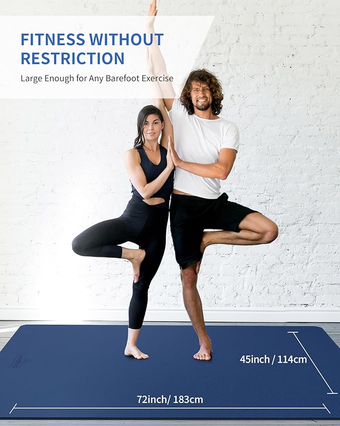- Fitness Without Restriction: Extra length and width(72"x 48"), You will never feel restricted or limited by the size of this fitness yoga mat; Extra-large space allows you to do any Yoga Poses, Pilates, Stretch, Foam Rolling, Cardio Workouts, Meditations and various barefoot bodyweight training like Squats, Lunges, Push-ups, Plank Variations, and Calisthenics