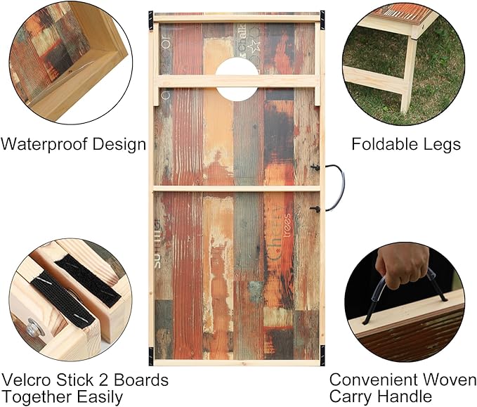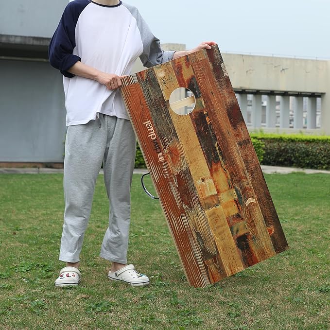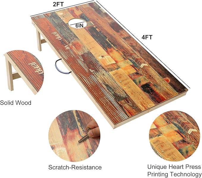 - 100% Solid Wood Construction: 2x4 FT cornhole boards are made from 100% solid wood, with the help of extra support bar, it can effectively prevent bounce or sway when the bags hit the board, sturdy structure can even support the weight of an adult