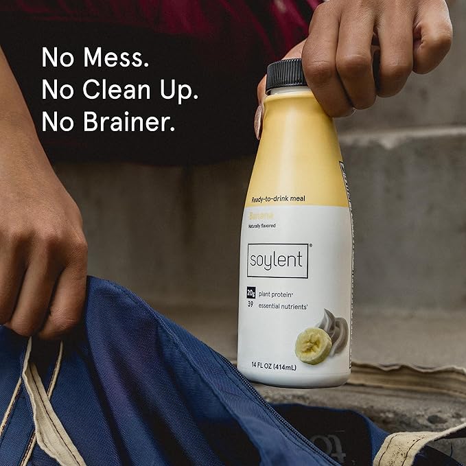 - Includes: 12 14-oz. Soylent banana ready-to-drink plant-based protein complete meal replacement shakes