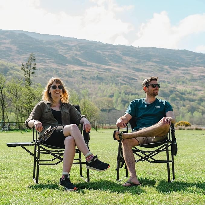 - Easy-Peasy: Setting this folding camping chair up is effortless and fast. You only have to take directors chairs out from the shoulder straps attached carry bag, unlocking the solid locks, pull down the tips of the legs, and … Ta-Da! Here you go: What a wonderful camping chair - now you can enjoy this supreme comfy director's chair and easily transport it to campsite, lawn, concerts, and festivals.