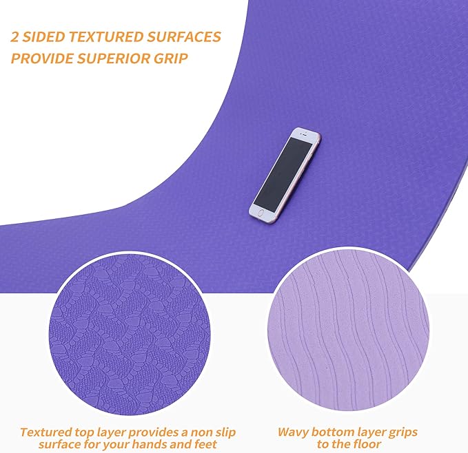 - 🧘♀️【Durable and Spacious TPE Yoga Mat】Our yoga beginners kit includes a premium TPE yoga mat with double-sided non-slip surfaces and two color options. Measuring 72"L x 24"W, it provides ample space and a 6mm (1/4in) thick for optimal comfort and support. The fast rebound technology reduces impact force, protecting your joints while maintaining stability.