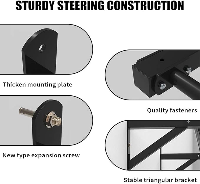 - Heavy Duty Steel Construction:This wall mounted multifunctional pull up bar is made of heavy duty steel,which offers great stability and rigidity,supports up to 440 pounds.