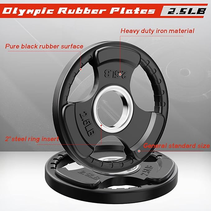 - SIZE- RitFit rubber plate can apply to all the 2 inch Olympic bars. We have 2.5lb, 5lb, 10lb, 15lb, 25lb, 35lb, 45lb and different combinations about the choices and you can add different size weight plates to change the weight you can bear.