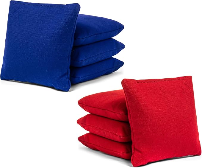 - 8 BEAN BAGS & CARRYING TOTE INCLUDED – Each Set comes with 8 Regulation Size Cornhole Bags (4 of each color). Bags Measure 6”x6” and are Filled with 15-16 ounces of Whole Kernel Corn. Made with Heavy Duty 12 oz Duck Canvas & Double Stitched for Extra Durability.