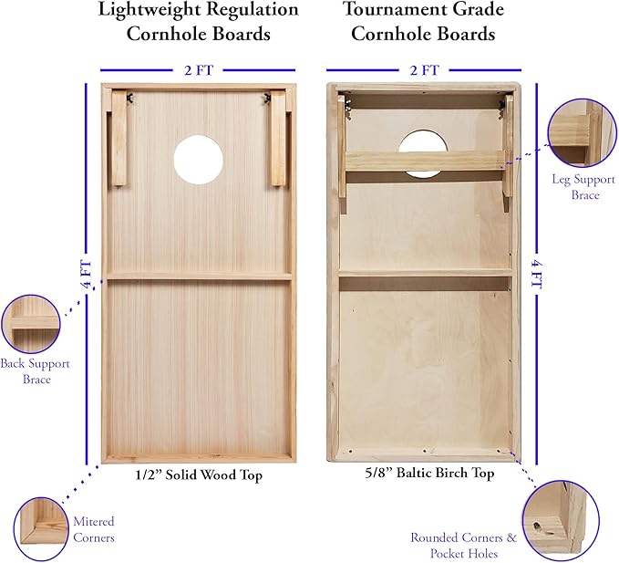 - SOLID WOOD CONSTRUCTION – Our Regulation Size Boards measure 4ftx2ft and are constructed from 100% Premium Wood, exceeding all ACA Regulation Standards. They're ready to be played with out of the box and have a support cross bar to prevent bounce.