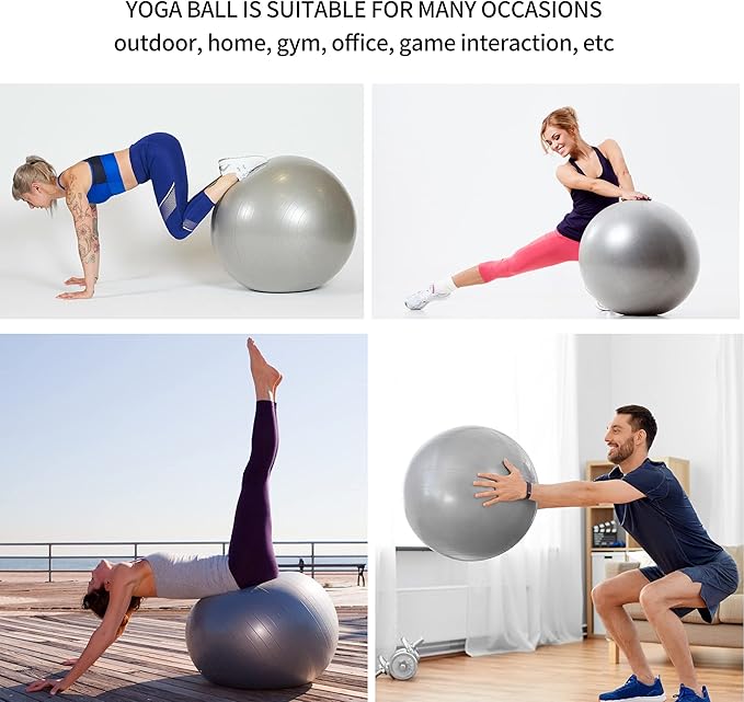- ★🔥[EXPLOSION PROOF YOGA BALL]: The yoga ball 65 cm diameter (25.6 inch) is designed for individuals from 170-185 cm(5.6-6.1 ft )tall for men or women, stretch the limits of your physical fitness by integrating stability exercise into your workout or rehab routine and develop the core muscles for abdomen fall prevention.Yoga ball is also an interactive toy for you and your children. It's fun to keep fit.