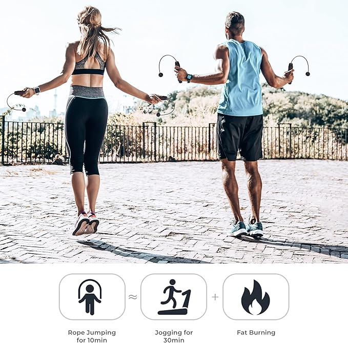 - ★🔥[ROPELESS JUMP ROPE]: The ropeless skipping movement, allows you to be in the forefront of fashion. The double bearing design of the ropeless skipping rope, fast and no tangles. You won't worry about tripping on the rope during exercise, and you can stay away from the pain of being entangled in ropes during exercise.