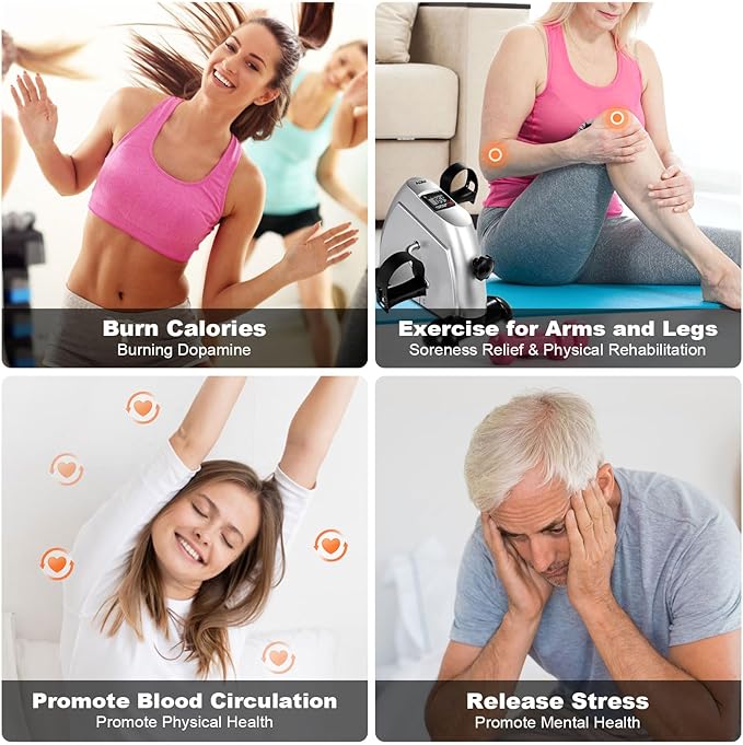 - 【Adjustable Workout Intensity】Easily adjust the resistance level with the tension knob to meet your needs. This mini exercise bike is a great choice for beginners and perfect for elderly exercise.