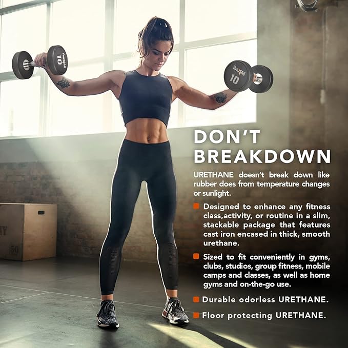 - PREMIUM QUALITY: Made of high-quality cast iron and covered with thick urethane for long-lasting durability, preventing rusting and deformation. The urethane coating also provides a comfortable grip and protects the floor from scratches or damages.