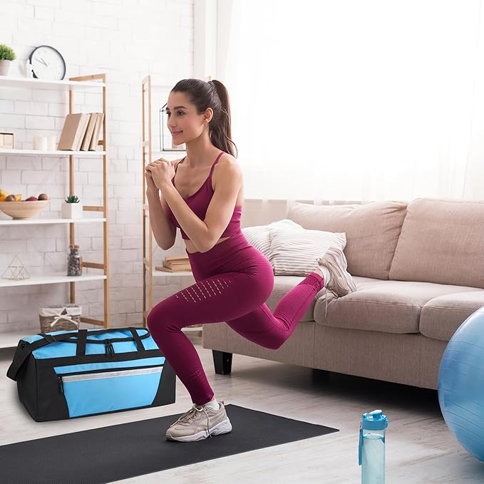 - GYM BAG FOR WOMEN: Light blue duffle bag for women & girls is built to store sports equipment, your running shoes, yoga mat, & more. This gear bag is perfectly suited for carrying all you need