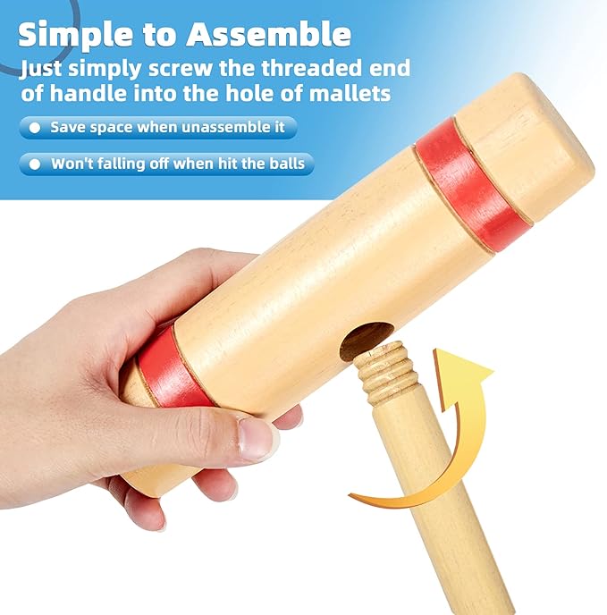 - Easy Assembly and Transport: Our croquet set is easy to assemble without any tools. Plus, with the included carry bag, you can take the fun with you wherever you go