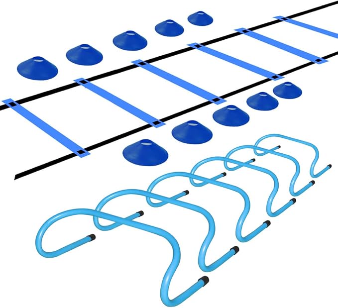 - Sports Training Set: Our sports training set includes an agility ladder,10 pcs plastic disc cones and a drawstring bag. This agility traing set is devoted to the improvement of balance, agility, speed, reflexes, and explosiveness. The drawstring carry bag is for you to efficiently carry all of your items.