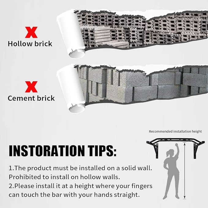 - Easy installation - This pull up bar for wall is mounted easily onto studs located behind your wall, onto concrete, or onto wood stringers for security and stability.