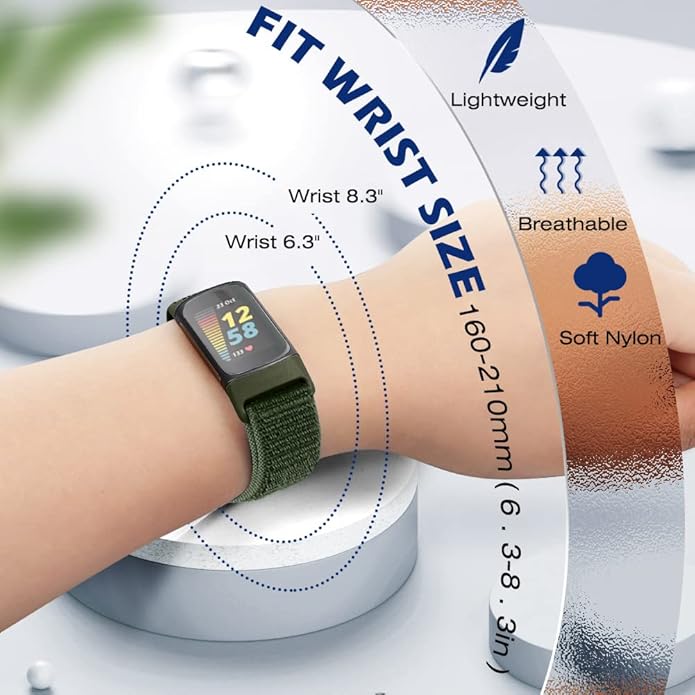- NO BUCKLE DESIGN -- Fits 6.3"-8.3" (160mm-210mm) wrist, the adjustable strong velcro helps you no need to struggle with racking buckles in order to secure your watch band anymore. No buckle needed, just easily stick and lock your Fitbit Charge 6.