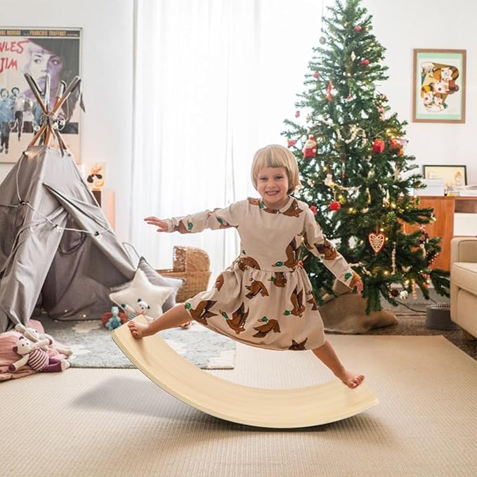 - š± UNLIMITED WAYS TO PLAY: The Wooden Balance Board is whatever you imagine it to be - a swing, a bridge, a shop, a cabin, a stepping stone, a racetrack, a lounge chair, fitness equipment, a puppet, a small football goal, a teeter popper or a tunnel.