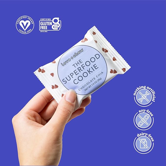 - NOURISHING SUPERFOOD COOKIES - Our bite-sized cookies are great for snacking. More than a guilt-free snack, these satisfying love + chew cookies provide a great source of protein and fiber. Carry these individually wrapped cookies on-the-go as a handy afternoon pick-me-up.