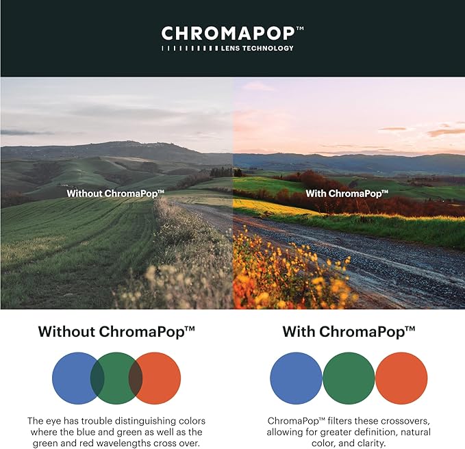 - Make the Details Pop: Features ChromaPop lens technology that helps enhance definition, contrast and natural color so you never miss a detail; the smudge- and moisture-resistant coatings mean easy cleaning & clear optics