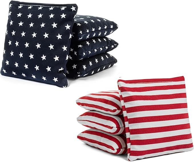 - 8 BEAN BAGS & CARRYING TOTE INCLUDED – Each Set comes with 8 Regulation Size Cornhole Bags (4 of each color). Bags Measure 6”x6” and are Filled with 15-16 ounces of Whole Kernel Corn. Made with Heavy Duty 12 oz Duck Canvas & Double Stitched for Extra Durability.