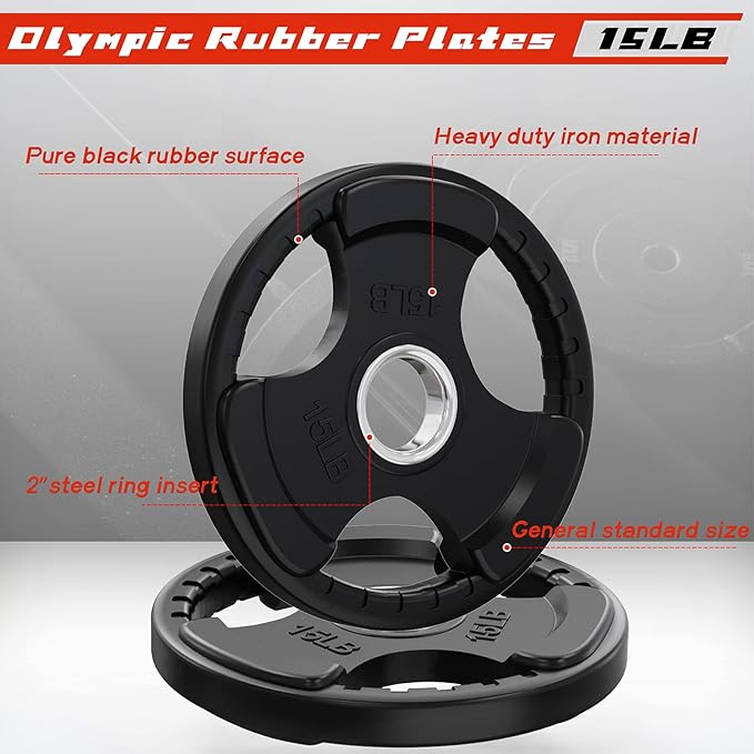 - SIZE- 15lb set includes 2×15 lbs. RitFit rubber plate can apply to all the 2 inch Olympic bars.