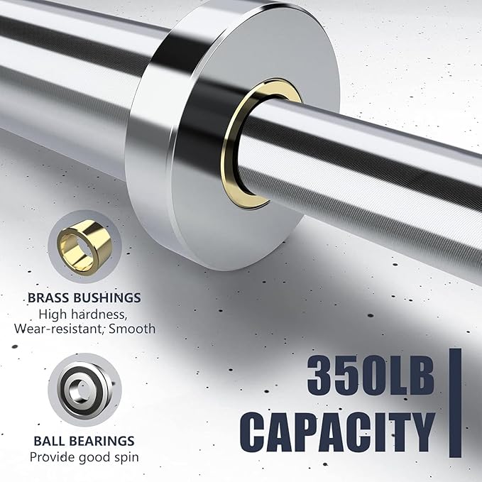 - PRODUCT INFORMATION: EZ curl bar is 47" long, 18.3lb weight, and 350lb capacity with 2 ball bearings and 2 brass bushings, which are suitable for 2" barbell plates and can provide good rotation