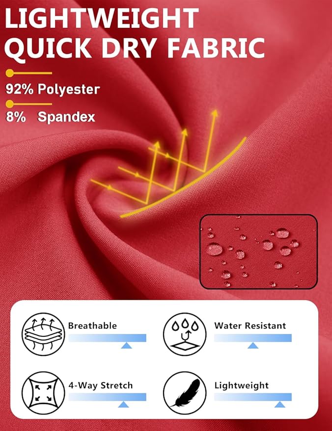 - 4-WAY STRETCH: Mens shorts have elastic waistband and adjustable internal drawstring, collocation 4-way stretch fabric ensures excellent mobility and maximum freedom of movement.