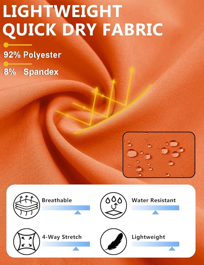 • 4-WAY STRETCH: Mens shorts have elastic waistband and adjustable internal drawstring, collocation 4-way stretch fabric ensures excellent mobility and maximum freedom of movement.