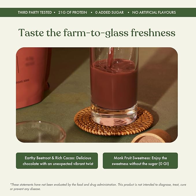 No Nonsense Plant Protein, Organic Brown Rice & Pea Isolate, Easy Digestion, 24G Protein/Serving, Gluten & Lactose Free Cocoa Beet 500 G (Pack of 1)