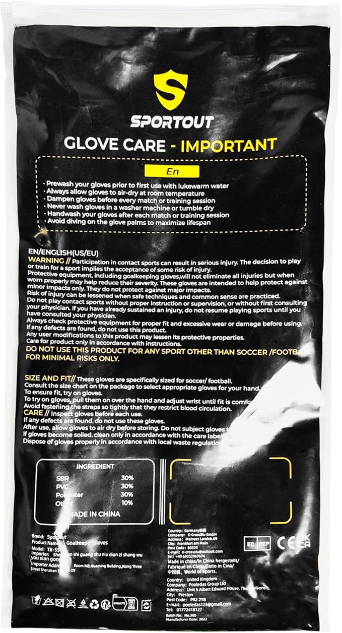Sportout Goalie Gloves, Goalkeeper Gloves with Finger Protection, Breathable Soccer Goalie Gloves, 4mm Latex, for Kids Youth and Adult
