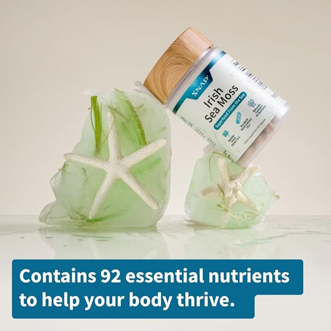 Snap Supplements Irish Sea Moss Capsules with Bladderwrack, Burdock Root & Iodine ??Supports Energy, Immune Health, Digestion & Skin ??60 Capsules
