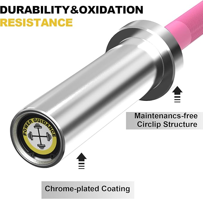 POWER GUIDANCE Chrome Olympic Barbell Bar, 2 Inch Weight Bar for lifting, Hip Thrusts,Universal Strength Training Bars 4ft/5ft/6ft